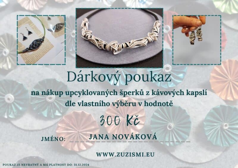 Nejste si jistí, zda by to měl být spíš náhrdelník, náušnice a nebo třeba přívěšek na krk či prsten, pak je dárkový poukaz skvělým řešením.