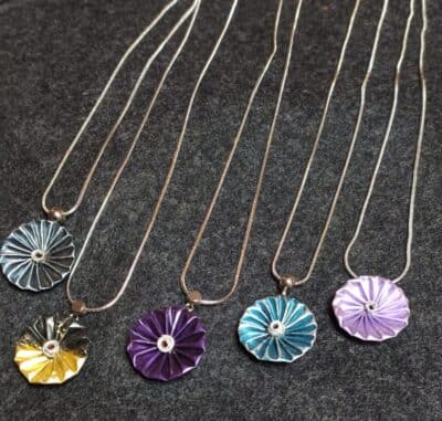 Přívěšek je vytvořený ze dvou barevných kytiček na sobě a proto kytička může být dvoubarevná.